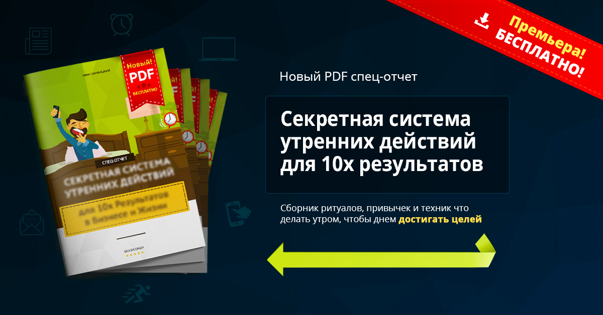 Для этого – заберите спец-отчет с простыми утренними ритуалами, которые помогут «разогнаться» с самого утра и решительно действовать, исключив стресс из вашей жизни.