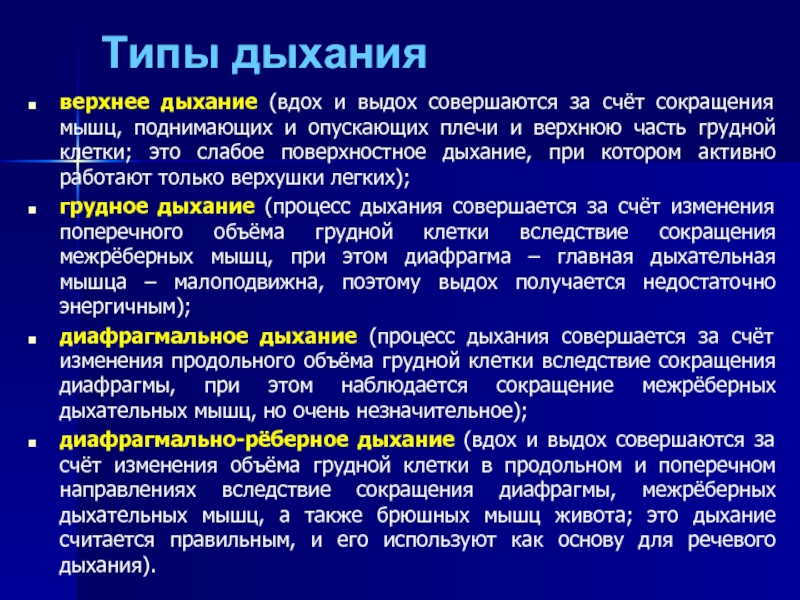 Теперь рассмотрим процесс дыхания с физиологической точки зрения.
