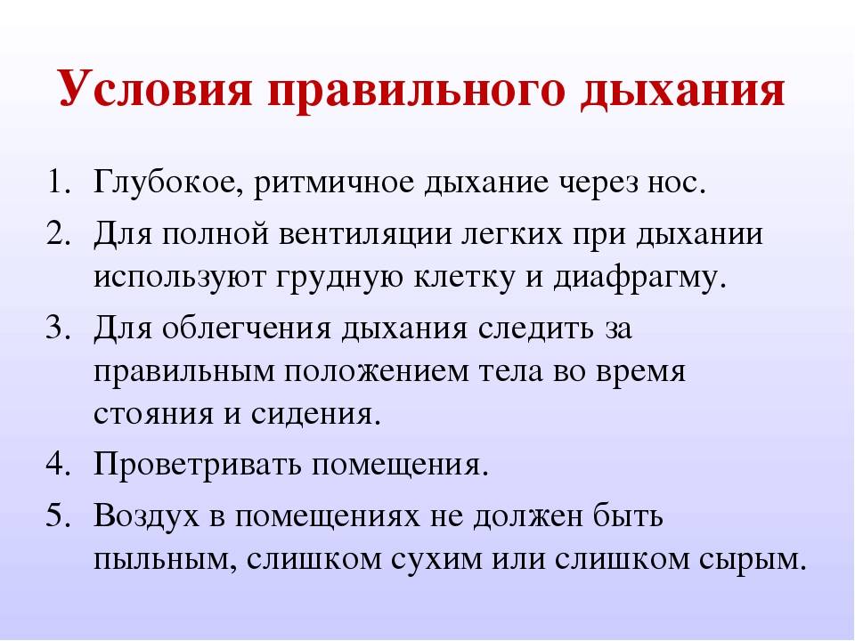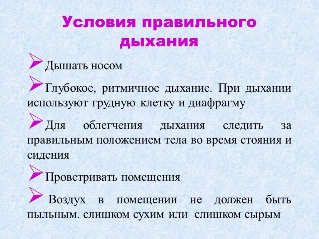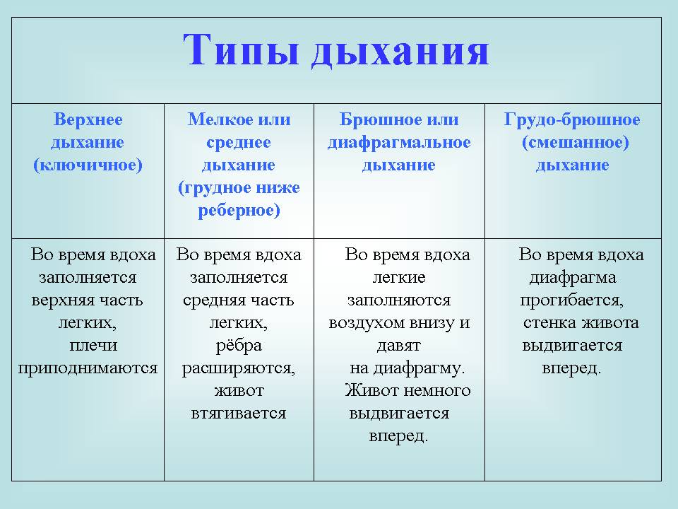 - Дыхание должно быть глубоким, чтобы полностью заполнить легкие кислородом
