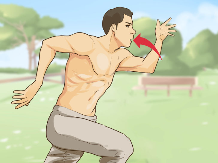 В отличие от нормального дыхания при беге следует вдыхать и выдыхать только через рот. Причиной этому является то, что при таком дыхании больше кислорода и быстрее поступает в легкие. Слегка приоткройте рот и дышите глубоко и контролируемо. Старайтесь не дышать во время бега часто или тяжело и не раскрывайте слишком широко рот при усталости.