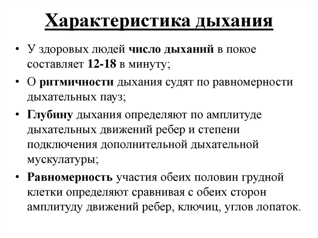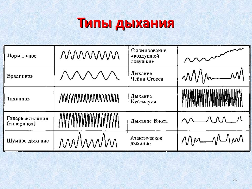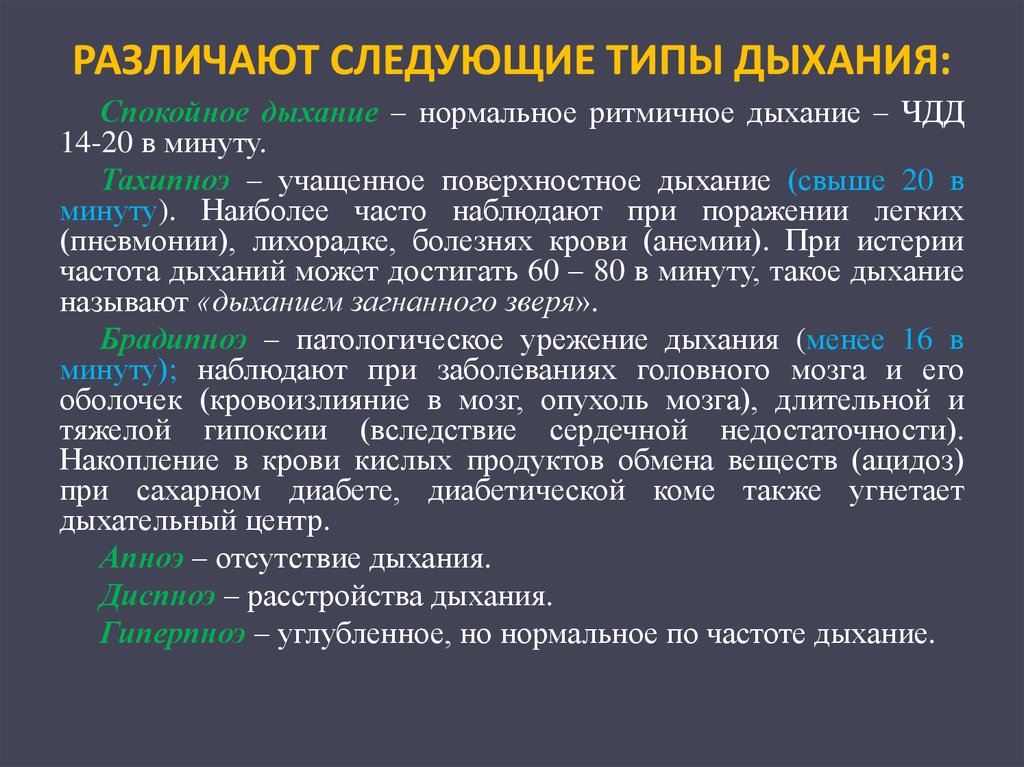 Как часто мы дышим. Днем мы дышим более интенсивно, чем ночью: обычно в минуту человек совершает 16–20 вдохов в бодрствовании и 12–14 вдохов во сне. Частота дыхания у детей чаще, чем у взрослых. Если дыхательных движений в минуту совершается больше 20 — это считается одышкой. Она возникает при физической нагрузке, а также при множестве заболеваний.