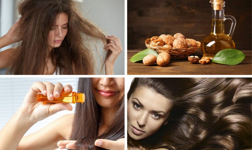 В составе масла, добываемого из грецкого ореха, много полезных компонентов. Все они направлены на то, чтобы сделать локоны более густыми, объемными и здоровыми.