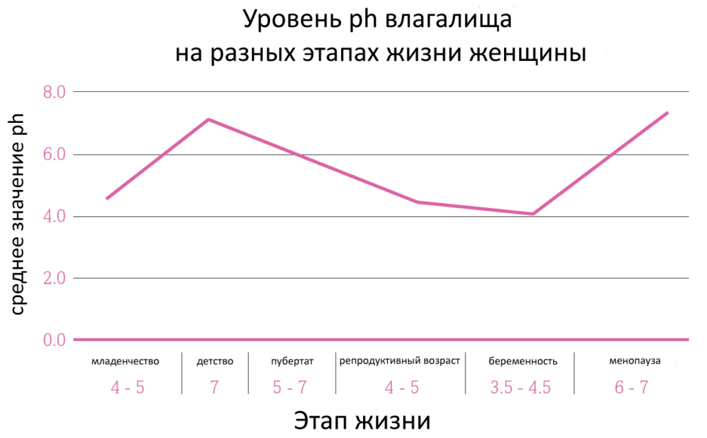 - У женщин кислое pH , около 3,8-4,4, это меньше, чем у кожных покровов на теле. Поэтому рекомендуется применение специальных продуктов для интимного ухода: гелей, мыла и пенок, муссов.