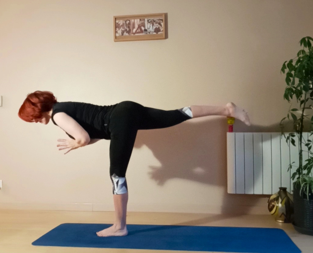 Мы с моими клиентами так часто делаем: делим позу на части и поочередно работаем только с одним элементом. И все получается. В конце концов, если вдруг обнаруживается, что поза недоступна даже по частям, всегда можно использовать поддержку стула или стены. И это реально помогает: люди чувствуют от них подстраховывающий эффект и находят устойчивость в таких адаптациях позы. Стул или стена дарят дополнительную поддержку до тех пор, пока не включится в полноценную работу вестибулярный аппарат.