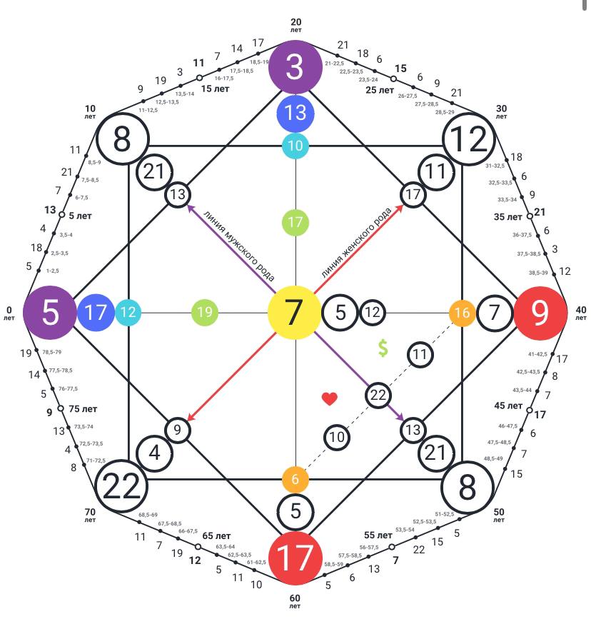 Оранжевые “кружочки” в матрице — это и есть Свадхистана. Но слева от матрицы судьбы вы можете заметить карту здоровья:
