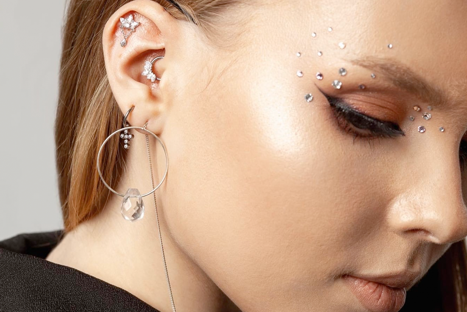 Пирсинг мочки уха большинство людей делают еще в детском возрасте. Это самый безболезненный вид пирсинга, так как в мочках нет крупных вен и нервов, которые можно было бы задеть. Рекомендуем обращаться к мастерам, которые выполняют прокол иглой, а не пистолетом. Игла меньше травмирует кожу и является более гигиеничным вариантом. Мочки очень быстро заживают, хорошо подходят для любых видов украшений. Для первого прокола всегда рекомендуется использовать гипоаллергенные металлы — титан или биосовместимое золото. После заживления вы можете ставить любые украшения и создавать целые композиции на свой вкус.