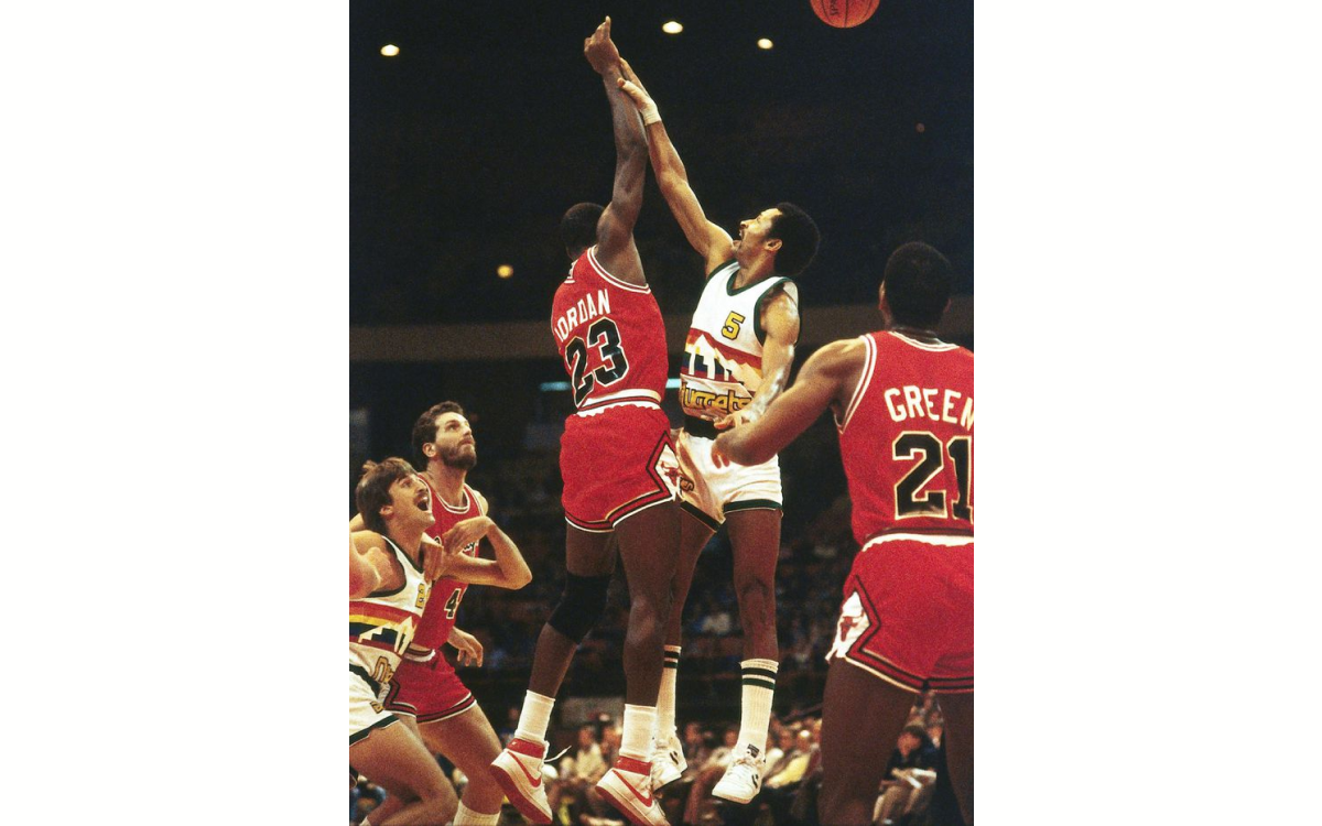 Баскетболист Майкл Джордан в кроссовках Nike Air Ships, выпущенных специально для него