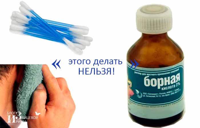 - закапывать любые средства, особенно те, которые содержат борный спирт (он сильно сушит кожу и может еще больше усиливать повреждения, приводя к сморщиванию перепонки и тугоухости);