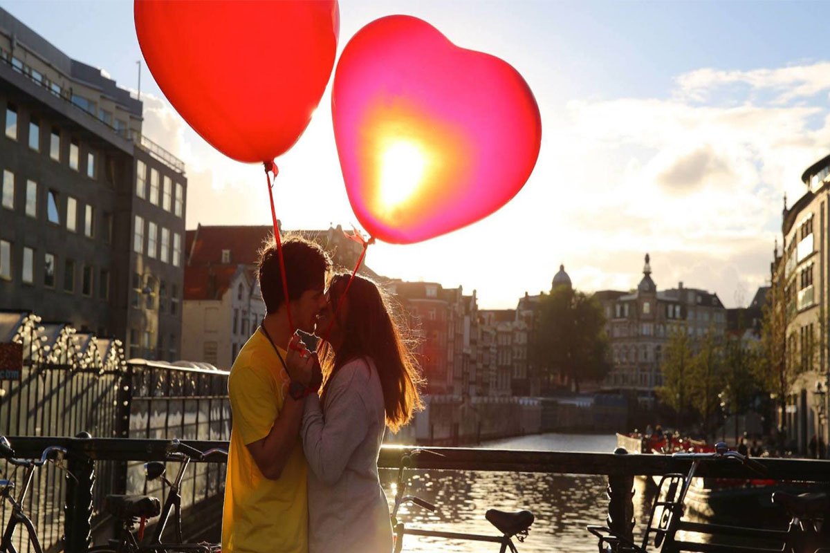 На улицах можно увидеть влюбленные пары, которые страстно целуются не замечая прохожих.