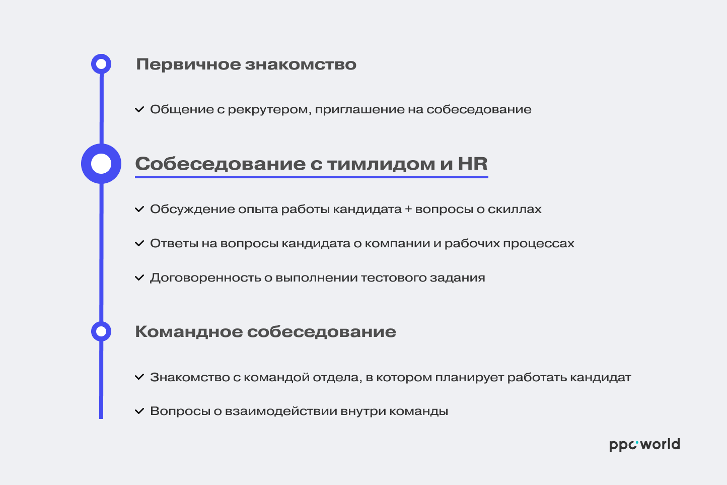 Задавать вопросы про рабочее время лучше на втором круге собеседований, когда вы общаетесь с тимлидом команды, в которую собеседуетесь, и с кем-то из команды HR. На первичном этапе это делать рановато, а на последнем — уже немного поздно, поскольку ответы на эти вопросы могут дать вам понять, что эта работа не для вас.