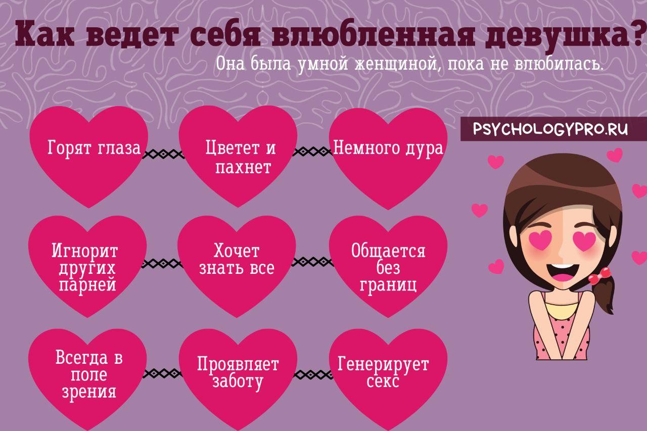 Для девушек характерно выражение эмоций языком жестов и намеками. Они не признаются в чувствах первыми из-за страха быть отвергнутыми. Помимо поведения и взгляда, есть другие приметы влюбленной девушки.
