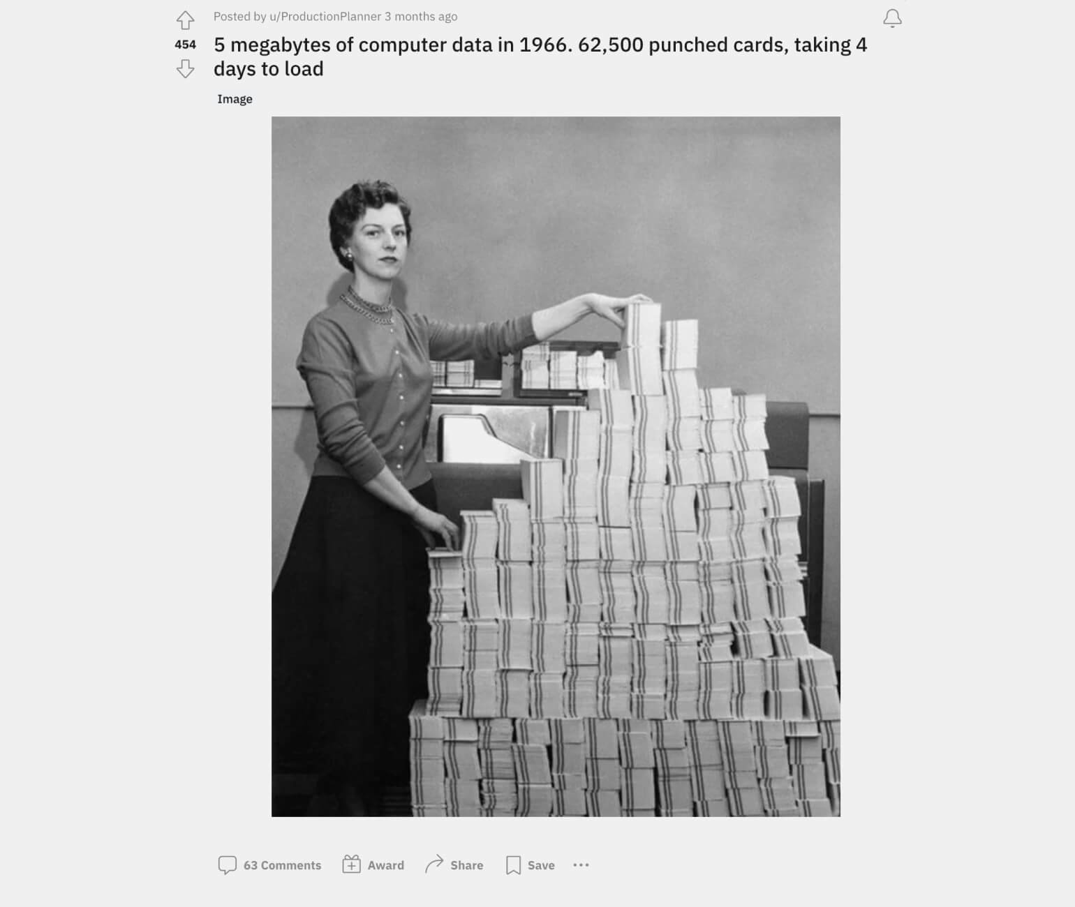 5 МБ данных в 1966 году. r/Damnthatsinteresting — собрание всего самого интересного из интернетаСкриншот: Reddit / Skillbox Media