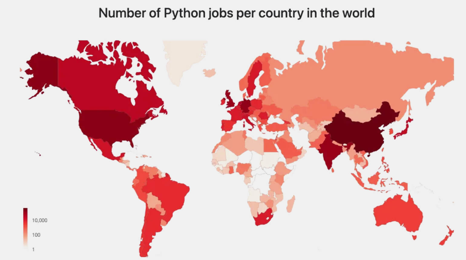 Количество вакансий на Python по странамИнфографика: r/MapPorn / Reddit