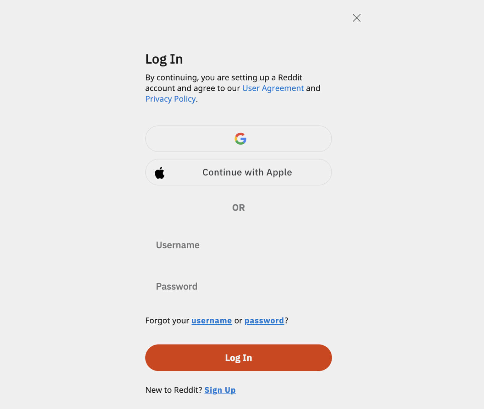 Регистрация аккаунта на Reddit бесплатная. Зайдите на reddit.com, кликните на Sign Up в правом верхнем углу и выберите один из двух способов: