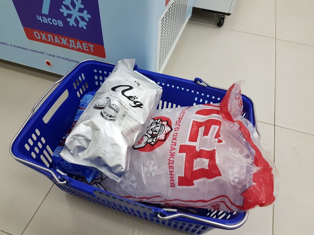 Взяли пакет плотного льда «Холод севера» (1 кг), пакет льда «Коктейльная вечеринка» (1,5 кг) и забрали последний 5-килограммовый пакет «Охлаждашки». Судя по всему, в Северном живут настоящие любители льда!
