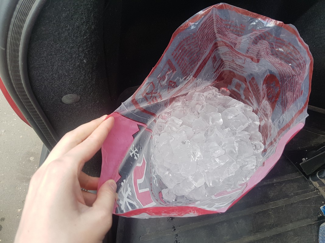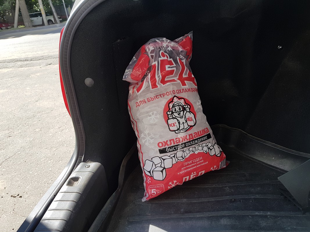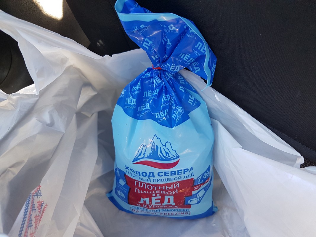 Упаковку с этим льдом мы везли в салоне авто в пакете на полу.