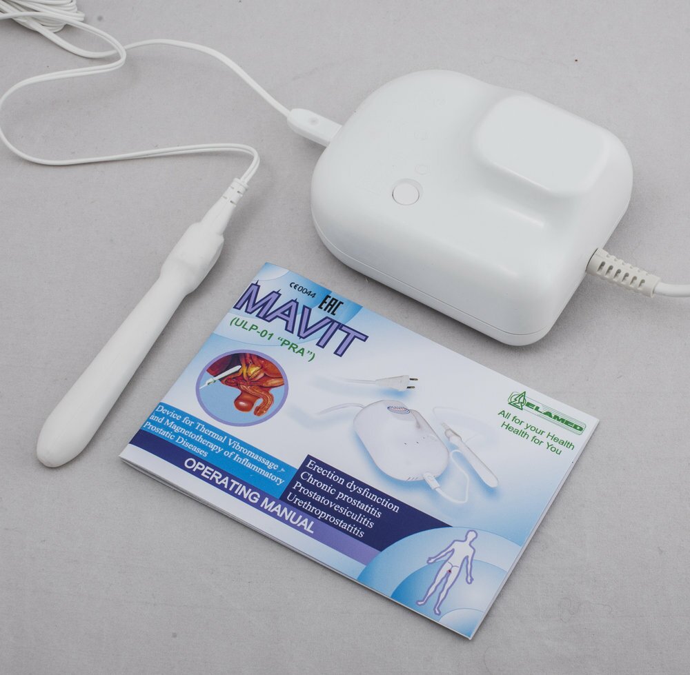 - Мавит. Данное устройство действует в трех направлениях: обладает прогревающим эффектом, массирует простату и оказывает магнитное воздействие. Для удобства применения прибор оснащен таймером. Аппарат может быть использован в домашних условиях. Курс лечения составляет 2-3 недели.
