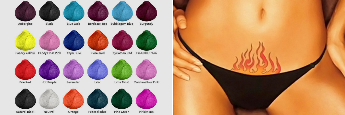 Diddy» Коумз окрашивают волосы в зоне бикини в разные цвета с помощью красок марки Betty Beauty.