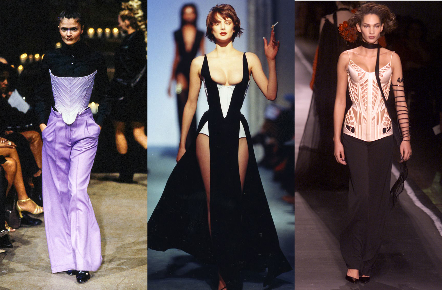 Слева направо: Alexander McQueen Fall/Winter Ready-to-Wear 1996, Thierry Mugler Spring/Summer Haute Couture 1998, Jean Paul Gaultier Spring/Summer Haute Couture 2001