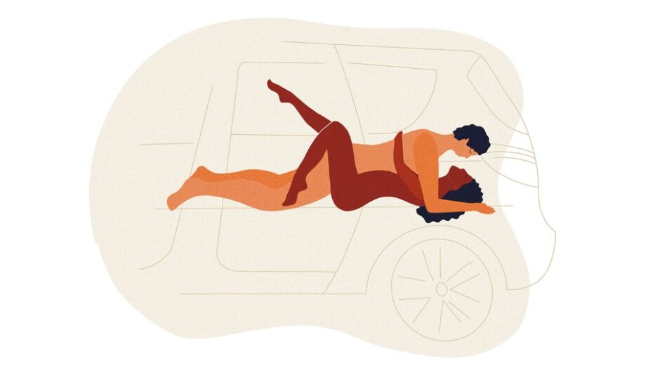 В этом положении снова происходит перпендикулярный контакт с гениталиями, что обеспечивает необычные переживания для обоих партнеров. Женщина может вызвать трение, прижимая икру своей верхней ноги к нижней части мужчины.