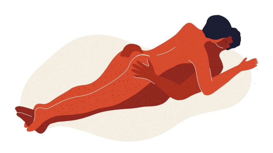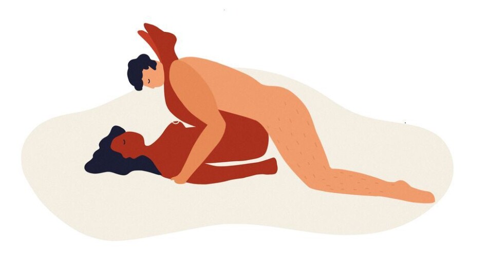 Вы ложитесь на спину и поворачиваете таз в сторону. Затем вы сгибаете ноги и раздвигаете их. Партнер садится на вашу голень, верхнюю кладет вам на бедро. Отличный вариант для стимуляции клитора.