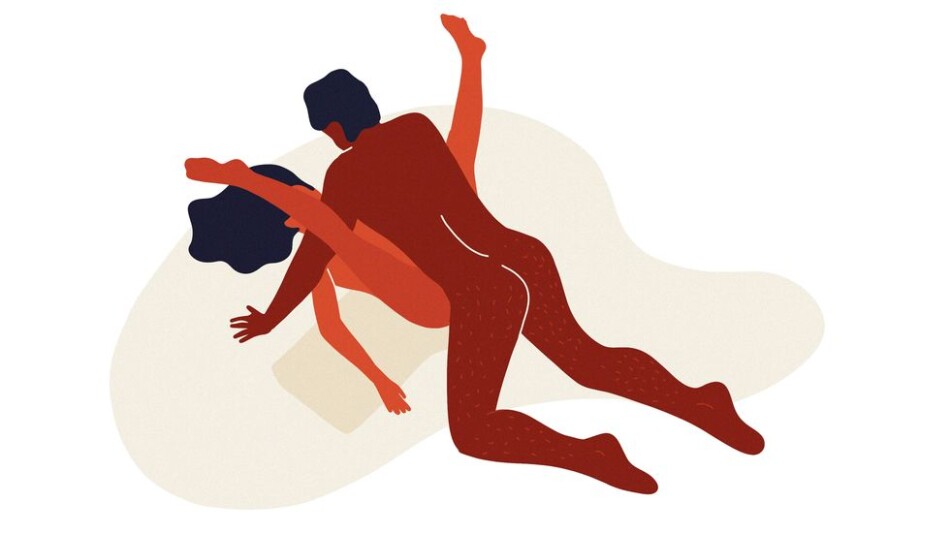 Вы лежите на боку, ваша голень слегка согнута, а верхняя нога привязана к талии вашего партнера. Мужчина также лежит на боку поверх вашей ноги. Вариант подходит для глубокого проникновения и хорош для стимуляции клитора.
