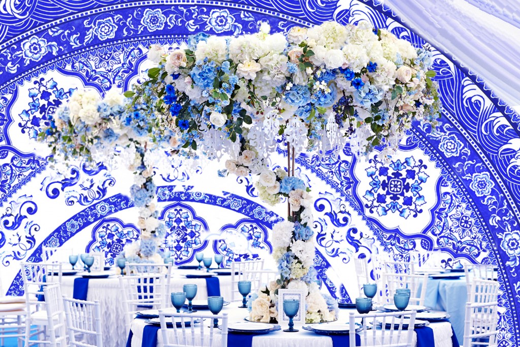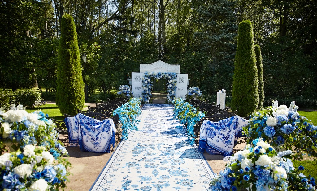 Интересным решением станет реализация концепции свадьбы в духе «Гжель». Только посмотрите как выигрышно смотрятся фотографии. А само торжество, оформленное в этом изысканом стиле, запомнится вам на всю жизнь!