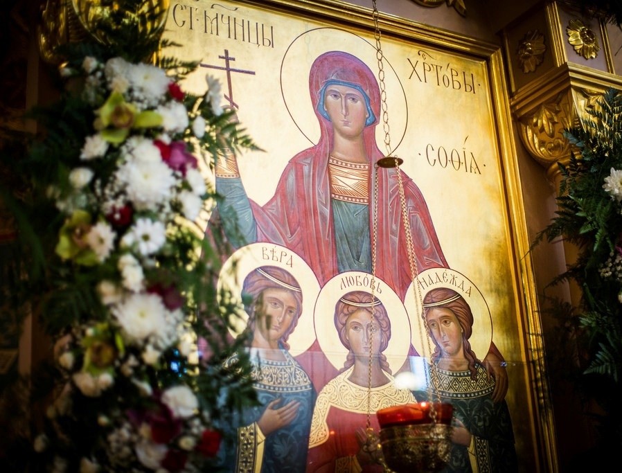 Святые пишутся вместе: мать, София, и стоящие перед ней три девочки. Все мученицы держат в руках кресты – символ их страданий. Св. София иногда изображается молитвенно воздевшей руки, на иных образах – обнимающей детей. Можно также встретить изображение Софии, держащей крест – ведь и она была мученицей, хотя бескровной.