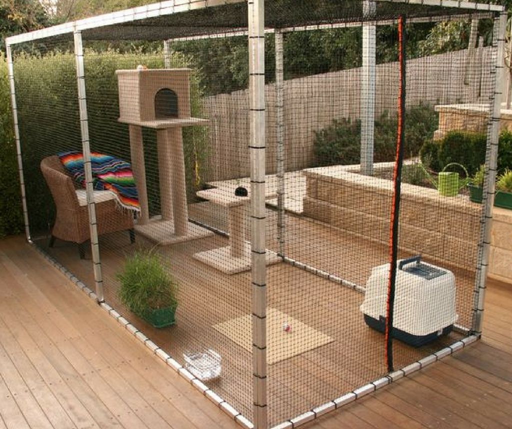 Прежде всего, необходимо выстроить «кошачий» городок. Кто-то строит вольер, огороженный сеткой. Некоторые просто выделяют помещение, обустраивают, и поселяют в нем кошек. Тем не менее, в обоих местах должны быть следующие приспособления: