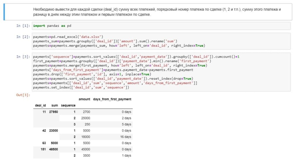 Это было не то, чем я занималась, но я разобралась. Нужно было написать в SQL запрос, который выгружал бы определенную информацию, обработать данные на Python, выполнить задание на понимание принципов А/В-тестирования и самой выбрать метрики и сделать дашборд. Далее было собеседование с непосредственным руководителем, мы обсудили задание, он спрашивал, почему я сделала так, а не иначе.
