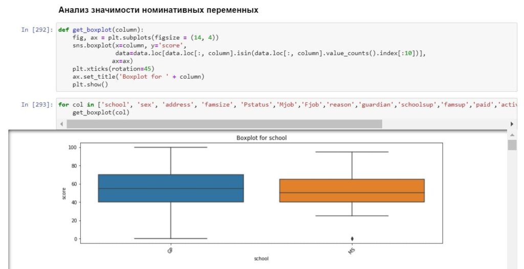 Задание из курса: анализ переменных модели, которая предсказывает баллы ученика на экзамене по математике