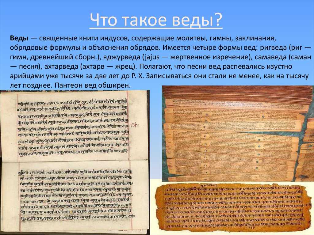 — это священные писания индуизма на санскрите. «Психологи» преподносят их как божественное знание. Советы, основанные на социологии, медицине, философии и архитектуре, о боге, сущности человека и гармоничной жизни. На конкретные тексты лекторы не ссылаются.