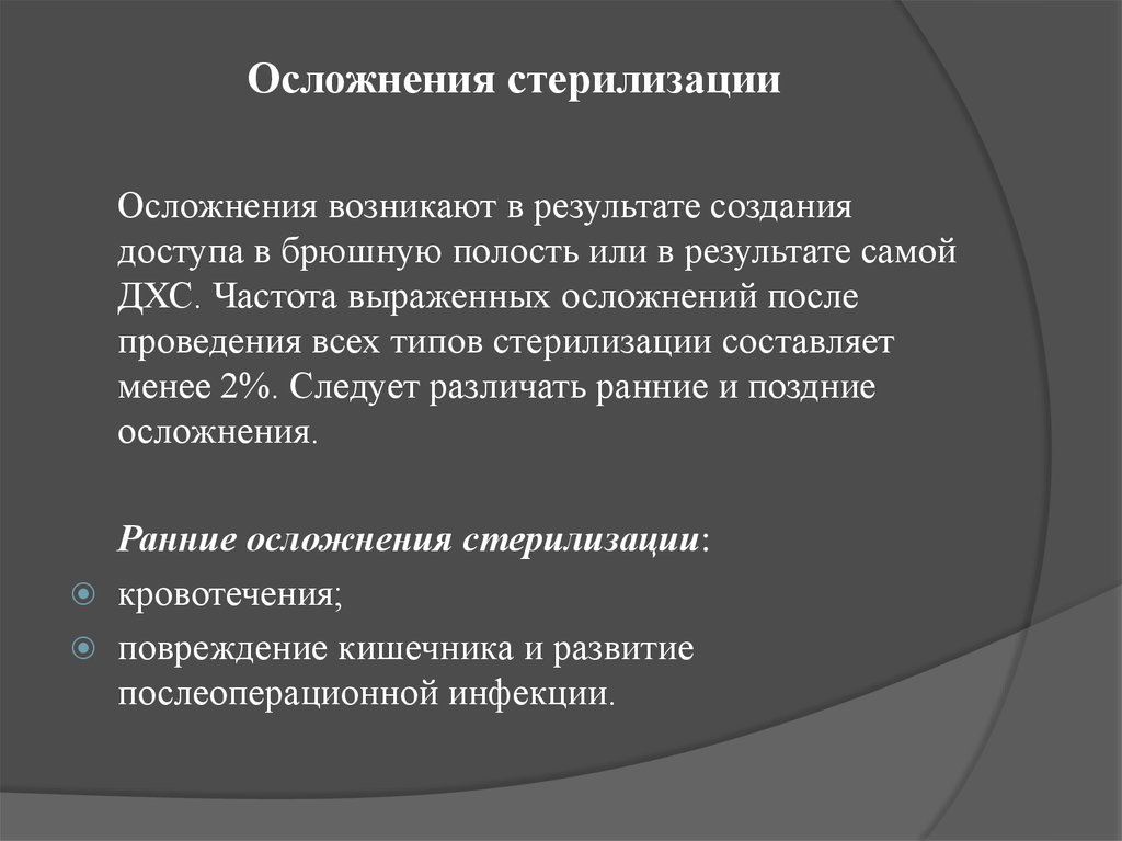 Осложнения после стерилизации крайне редки, но всё-таки бывают. Возможны: